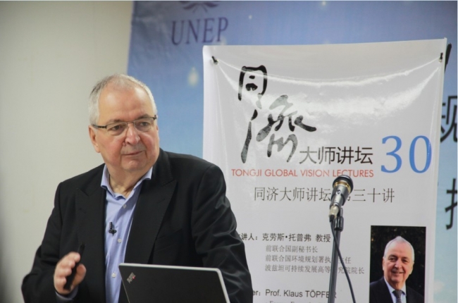 6月25日-26日,前联合国副秘书长、联合国环境规划署执行主任、波兹坦可持续发展高等研究院院长克劳斯•托普弗教授访问同济大学,并为同济学子带来了三场关于环境能源和政策领域的讲座。