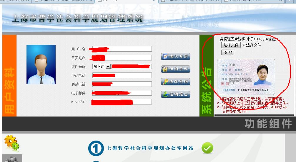 A: 重新登录系统后,点击“详细资料”,修改具体内容后保存。然后登录课题申报系统,进入课题数据修改页面,直接点击最底下的“修改申报”按钮,课题申报数据的个人资料部分就可以更新了。