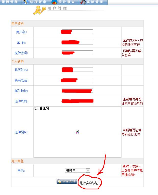 A:申请人如果是首次注册,建议先完善“个人详细资料”,特别是正确选择“所属系统”和“工作单位”,然后再做实名认证。否则没有单位信息做匹配,机构用户是看不到该申请人的。第二种情况,申请人以前只注册个人用户,没有填写个人详细资料或填报课题的。这次如果忘记密码了,只能和社科办联系寻求帮助了。第三种情况,申请人单位有变更,先在个人详细资料里修改工作单位,然后做实名认证,否则现任机构用户也看不到该申请人的资料。