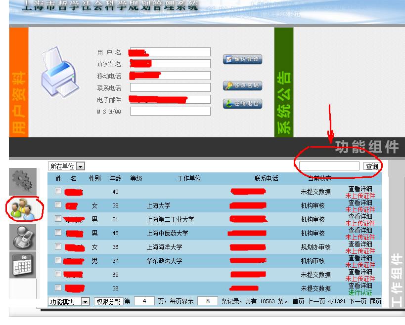 A:机构用户登录后,进入专家库列表,点击相关申请人信息提示,如下图: