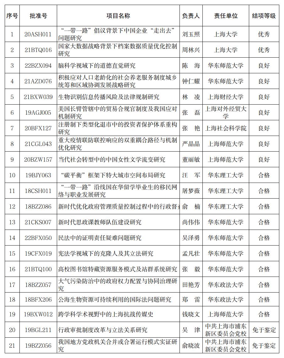2024年8月,全国社科工作办验收459个年度项目、青年项目和西部项目结项申请。经专家鉴定,我市21个项目通过结项。现将结项情况公布如下: