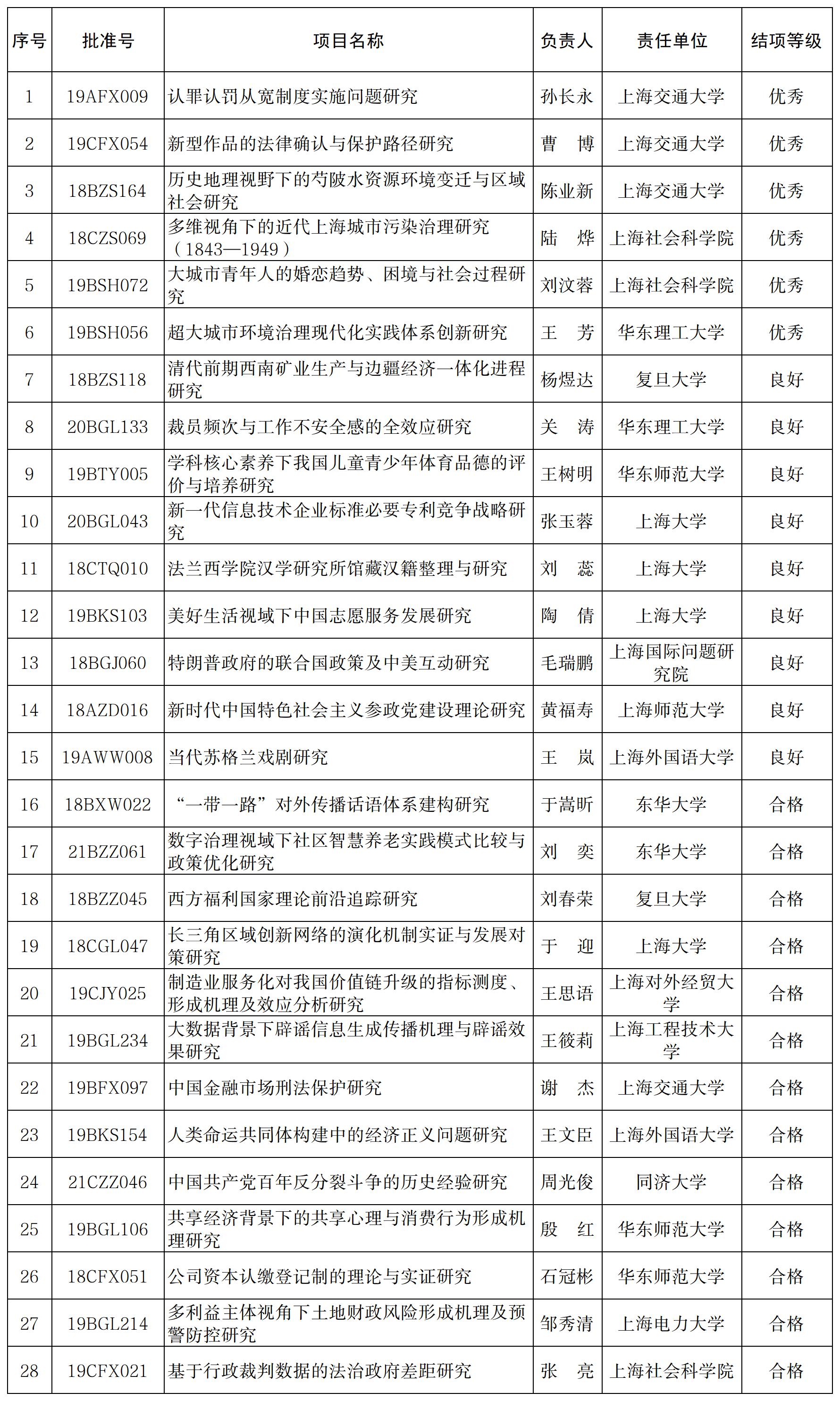 2024年10月,全国社科工作办验收452个年度项目、青年项目和西部项目结项申请。经专家鉴定,我市28个项目通过结项。现将结项情况公布如下: