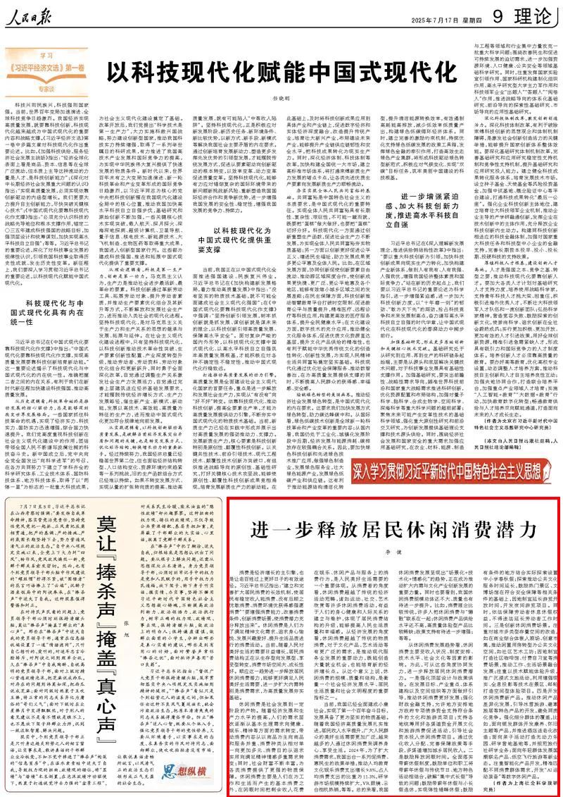 李健:进一步释放居民休闲消费潜力