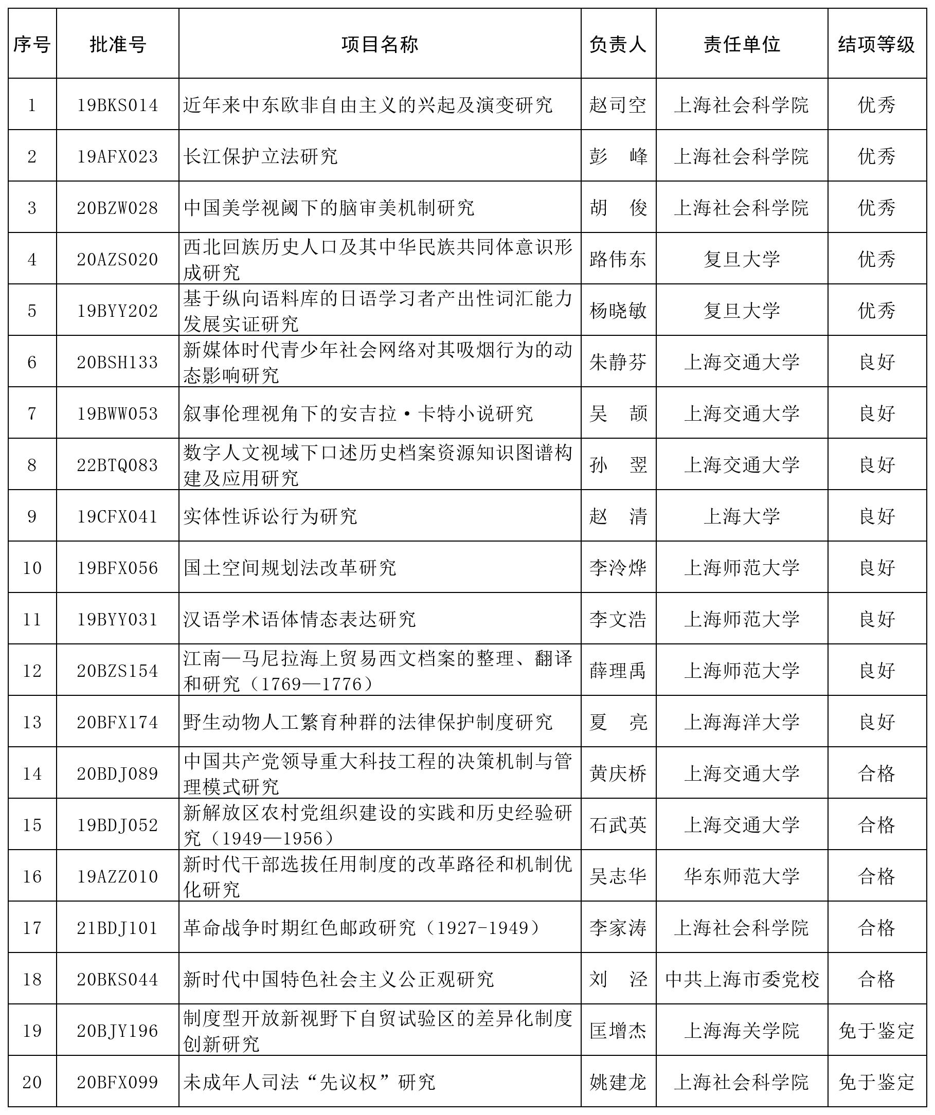 2025年7月,全国社科工作办验收468个年度项目结项申请。经专家鉴定,我市20个项目通过结项。现将结项情况公布如下: