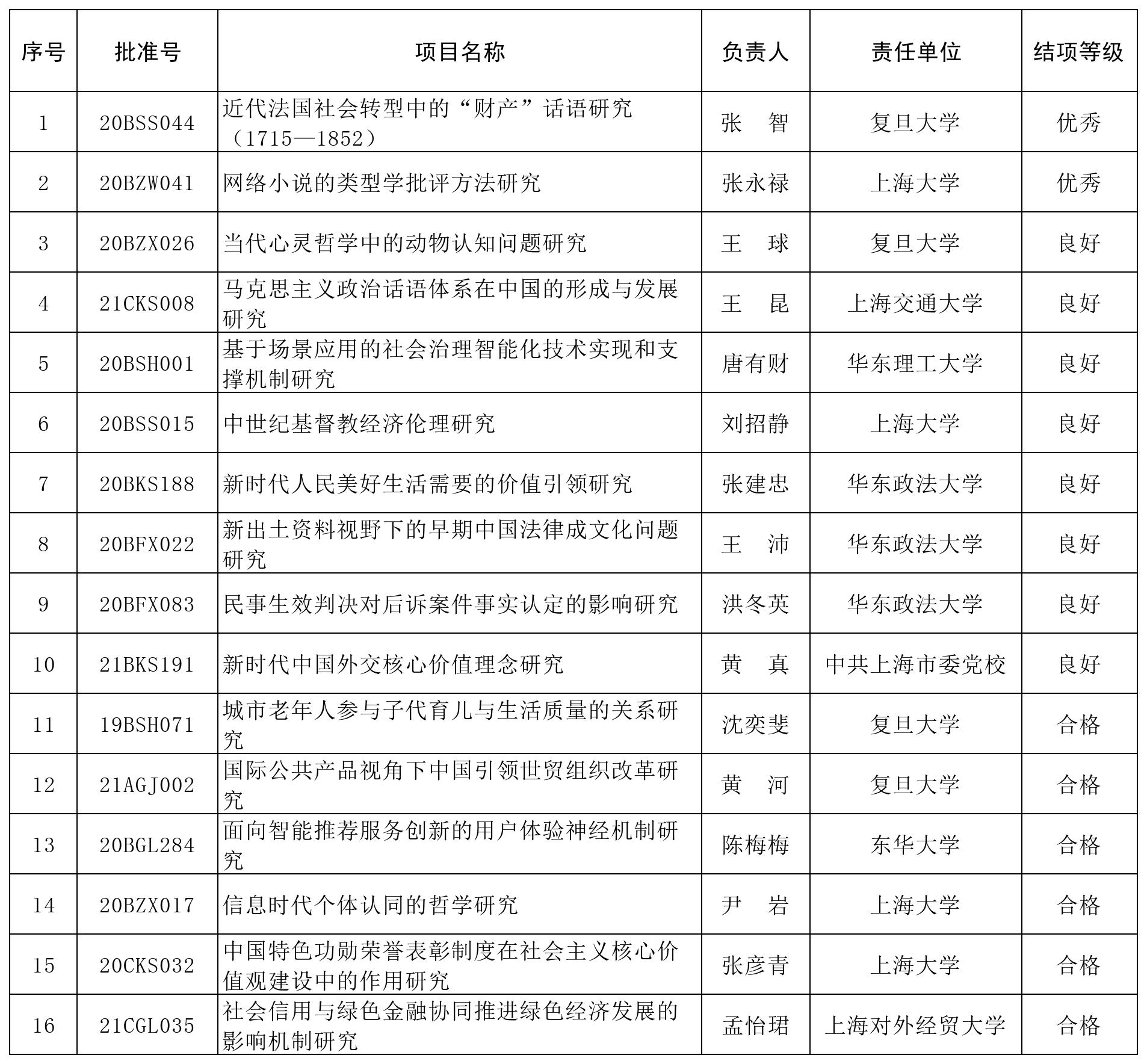 2026年1月,全国社科工作办验收610个年度项目结项申请。经专家鉴定,我市16个项目通过结项。现将结项情况公布如下: